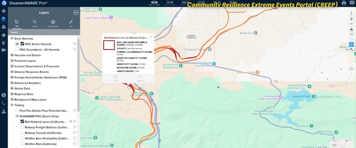 The global temperature is rising, and natural disasters such as wildfires, floods, and landslides are becoming increasingly common and more severe. Research indicates the results of multi-hazard exposure and risk to rail infrastructure could be catastrophic. Delays from temperature alone could cost $45 to $60 billion by 2100. Approximately 27% of all global road and railway assets are exposed to at least one hazard annually and 7.5% are exposed to 1/100 year flood event. What is being done to protect our nation’s critical infrastructure and our communities?