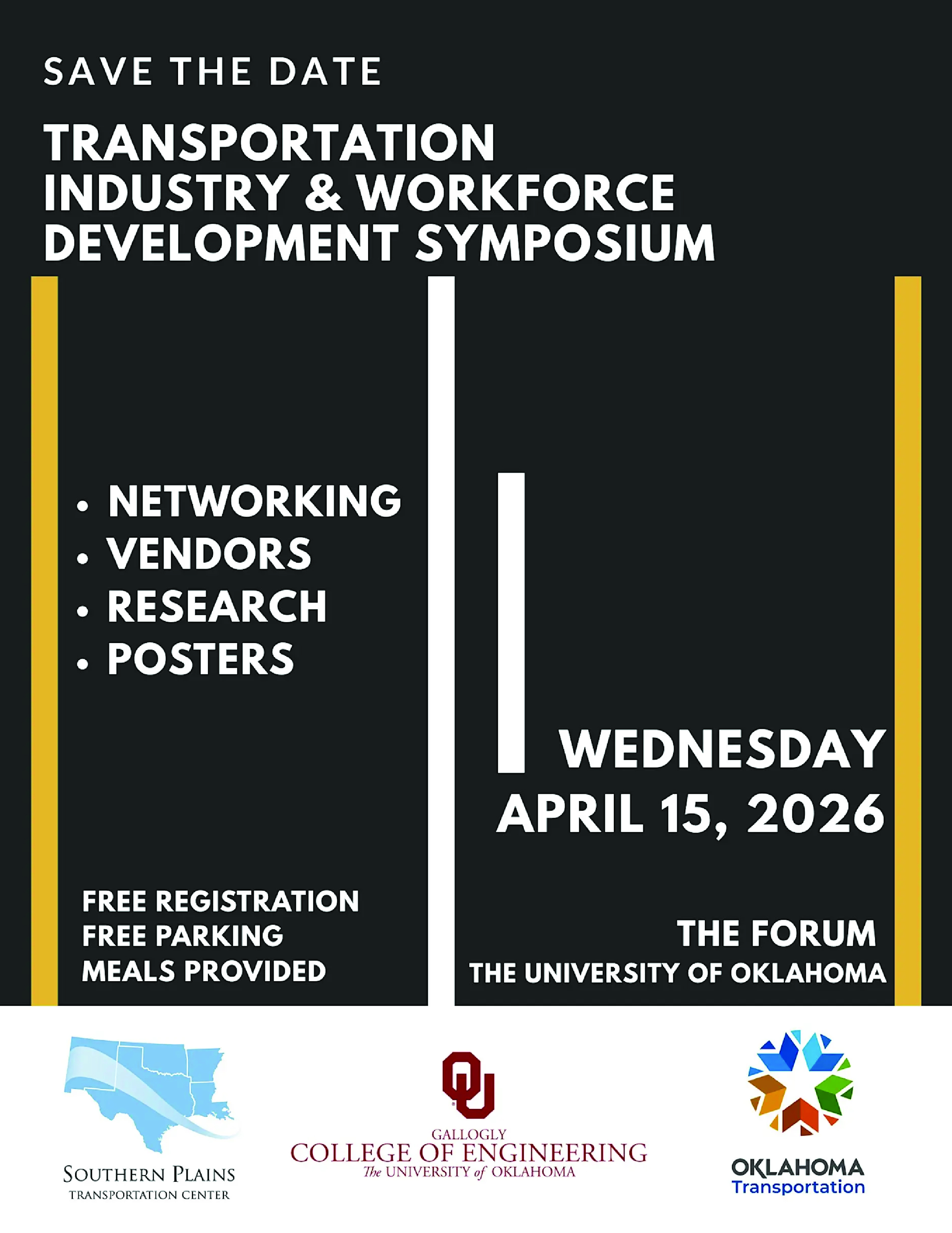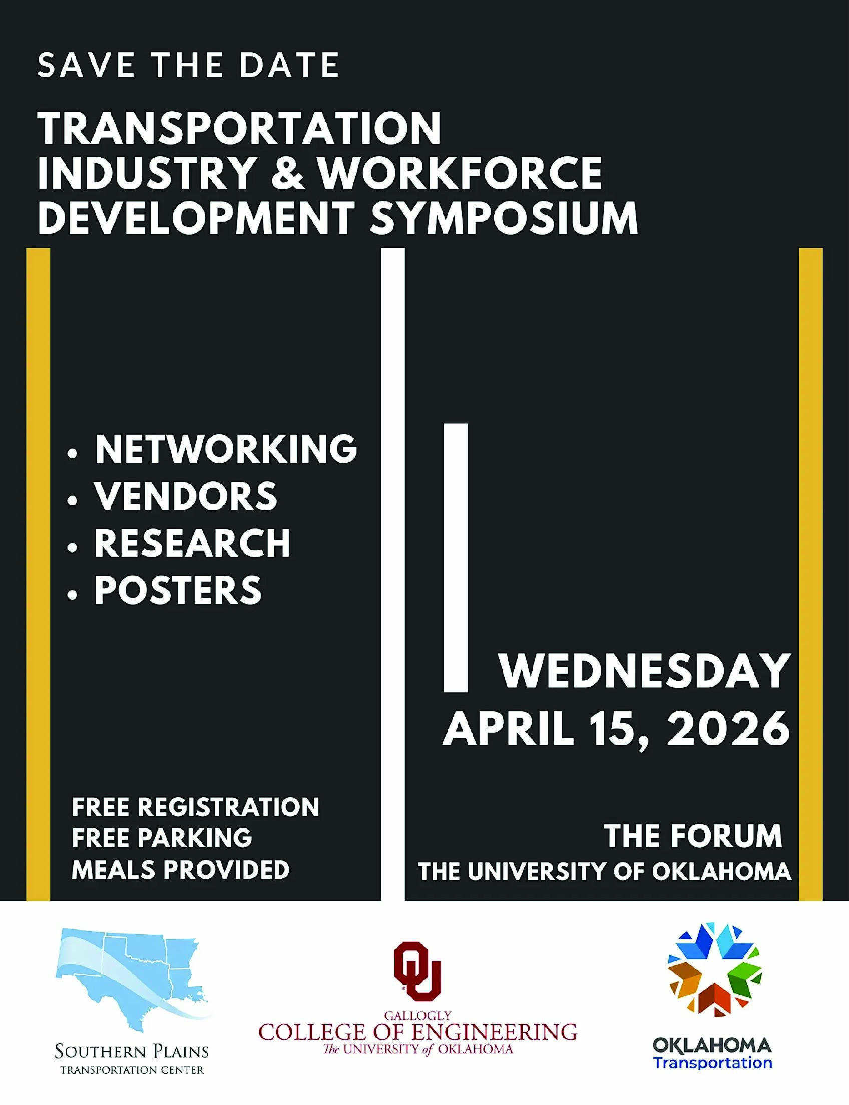 The Southern Plains Transportation Center (SPTC) would like to invite you to the Transportation Industry & Workforce Development Symposium. This hybrid event will bring students and industry together for networking, connecting, and educating. State and federal transportation agencies, private companies, and industry organizations will host information booths and discussions about transportation career opportunities, allowing students to meet potential employers in person or virtually.